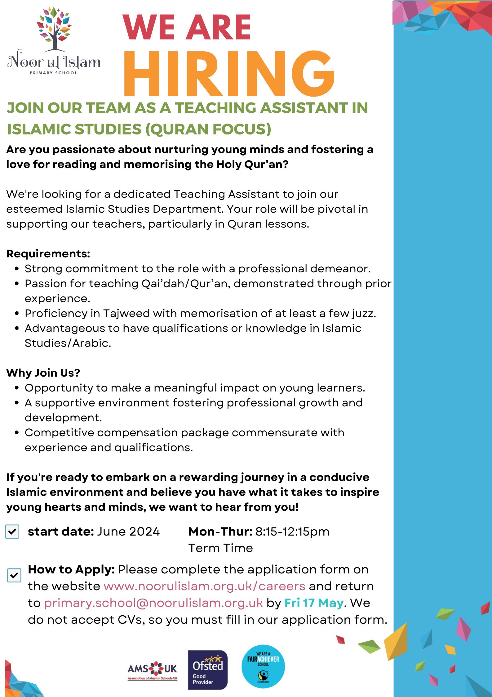TEACHING ASSISTANT – ISLAMIC STUDIES