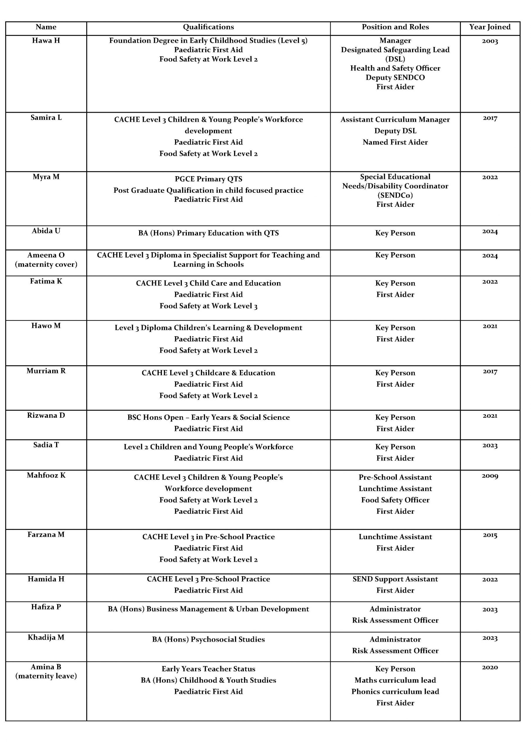 Our staff team is made up of: